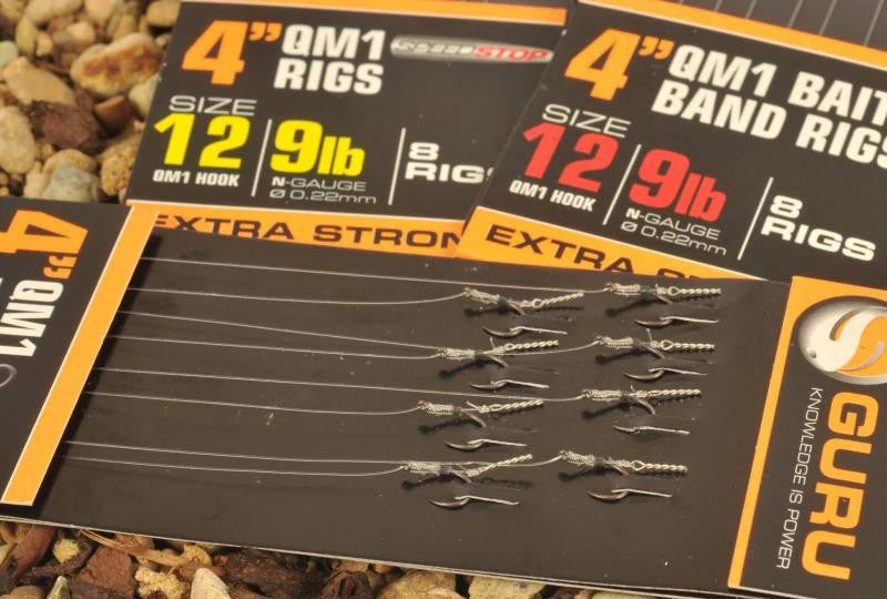 Each pack contains eight 4 inch N-Gauge hook lengths, tied to the classic Guru QM1 barbless hooks.