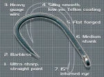 The Hybrid Wide Gape B is the same pattern as the wide gape but slightly heavier in the gauge to make the hook hold more secure. There is no barb to impede penetration so the thicker wire helps to keep the hook in.