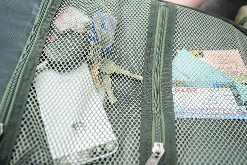 Korum Transition Luggage is our most functional, portable and feature-packed offering to date. We have combined high-spec materials to offer the perfect fabric in all the right places. Utilising heavy-duty stormproof materials for lids and bases, lightweight jacquard Ripstop fabrics for outer pocket surfaces and super strong 600D fabric for strength where it matters. There’s also comfortable padded Neoprene for carry handles, and a high-density ridged webbing for carry straps and fabric reinforcement. New features include D loops, a Transition Holster and improved carabiner clips.