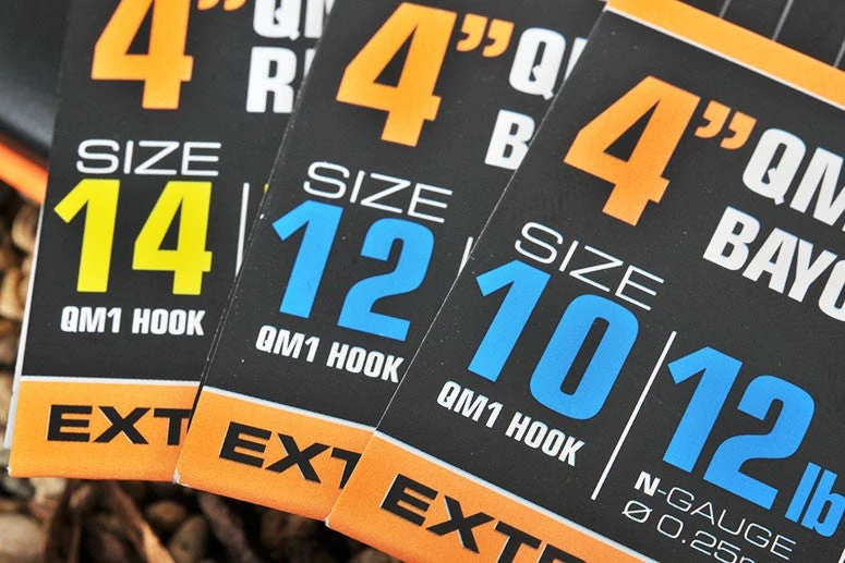 The all-conquering QM1 hooks are now available on ready-tied rigs, in 15 and 4-inch versions and with Speedstop, bayonet and bait band attachment options. The 15-inch versions are supplied on EVA spools, so they can be dropped straight into the Guru Rig Box and the 4-inch versions can be housed in the Rig Case.