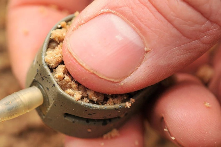 Plenty of holes in the frame of the feeder ensure that the bait that you pack onto it can be sucked off the feeder almost as soon as the feeder hits the deck, allowing you to convert bites quickly. It’s extremely quick to load too, which allows you to spend more time ‘on fish’ when you’re in the zone. To load, all you do is thumb a little dampened pellet into the base of the feeder, pop your hook bait on top and press a little more pellet over the top, slightly less firmly.