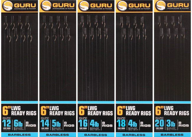 These LWG Spade End Barbless Hook Rigs are Perfectly balanced hook size to line strength ratio – and are tied to to Guru N-Gauge line. Perfectly tied spade end hook. Figure of eight loop for easy connection. Use with pellets, meat, corn, maggots, casters, etc.