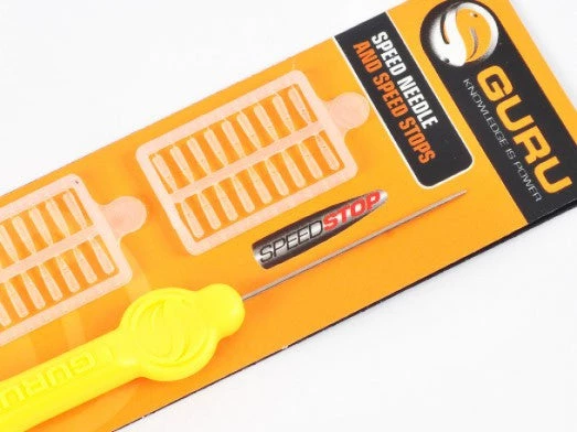 The Speedstop system allows ultra-quick mounting of drilled pellets, soft pellets, corn luncheon meat, boilies and worms onto the hair rig. Once the small, plastic Speedstop is tied to the hair it can be fitted to the Speedstop Needle and pushed easily through a bait. Once through, the Speedstop acts as a hair stop. Expect to see efficiency conscious Gurus like Adam Rooney and Steve Ringer using them