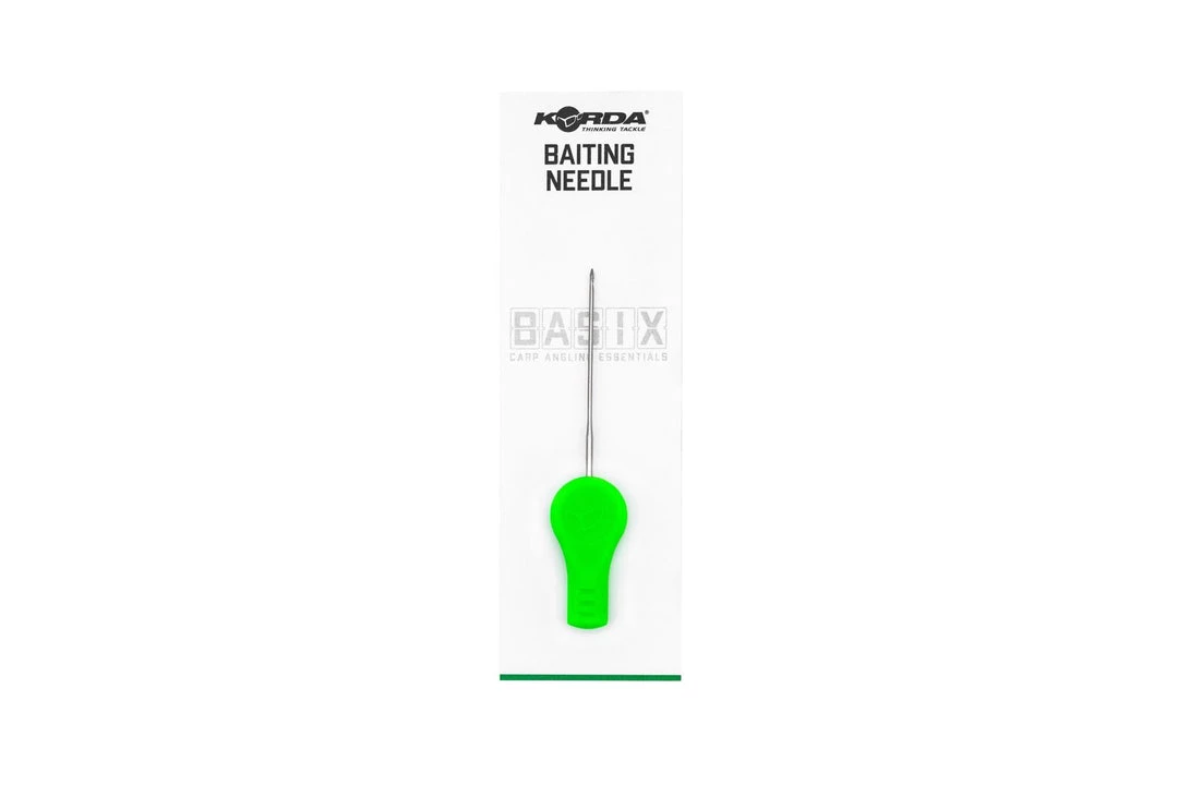 This Basix Baiting Needle can be used with most baits, as it is sharp and strong, meaning that it can be pushed through most harder baits without fear of splitting them. The ‘crook’ on the end has been designed to hold your hair in place whilst the bait is threaded onto it, off of the needle, but without danger of it fraying braided materials or causing them to separate, which can make it hard to insert a hair stop. The bright green handle has been ergonomically designed, and should you drop it on the ground makes it easier to find. The chrome plated needle has been designed to last and won’t rust.