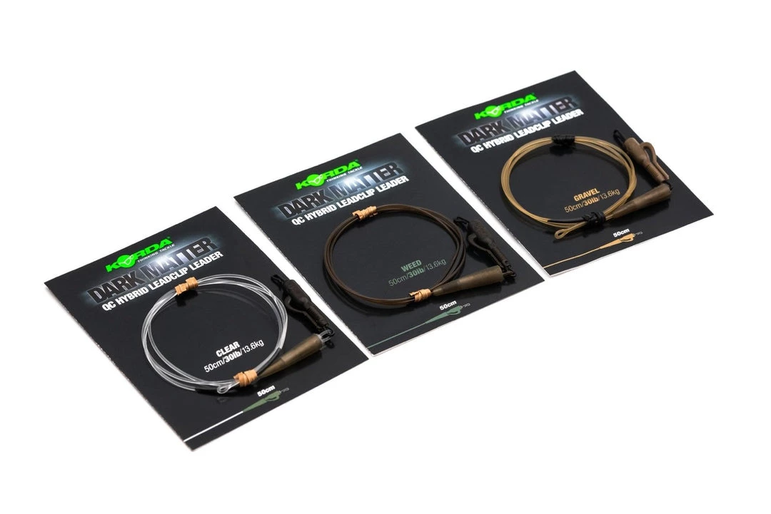 Korda have now added a Hybrid Lead Clip QC version to thier very popular range of Dark Matter fused leaders, to allow you to quickly change your hook link in as hassle-free a way as possible, whenever you choose to. These leaders have integral sections of tungsten to ensure that they stay pinned to the lakebed and help to avoid spooking wary carp, and come in a choice of 1m or 50cm lengths –to cater for those who require a shorter version, such as when fishing at long range, or where fishery rules dictate a maximum length.
