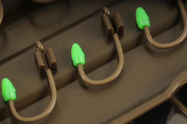 These hooks represent the biggest breakthrough in hook manufacture… ever. We took one of the truly iconic hook patterns and coated it with the industry’s first coloured PTFE finish to make them blend in even better. The ultra-sharp Kaptor point has been left uncoated, because the development team had noticed that uncoated points were sharper. To preserve the eye-wateringly sharp point, each hook is ‘capped’ with a rubber blob. This process ensures that the sharpest point in the carp world stays just that. Each hook is then clipped into a bespoke packet so that it stays pristine until you need it.