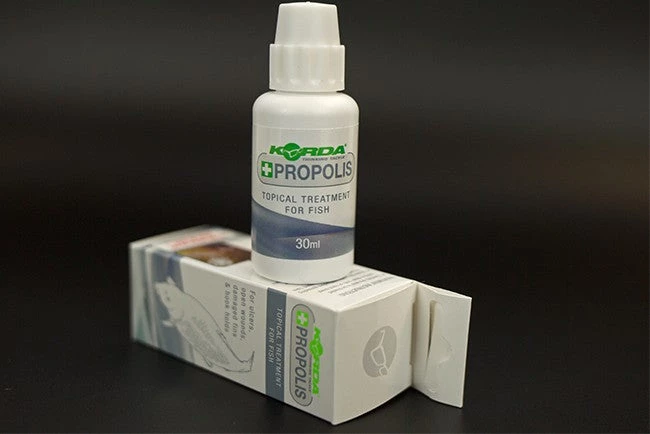 Propolis is a topical treatment used to help seal fish ulcers, open wounds on both the mouth and body and damaged fins. Propolis is a waxy substance produced by bees to protect against infection. Propolis is supplied as a thick, dark brown liquid for easier application and lasting protection when fish are introduced back into water. spread over cleaned and dried ulcers and wounds to form a waxy seal.