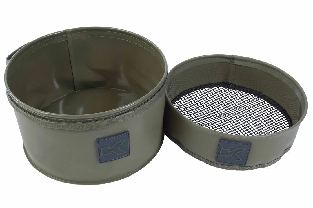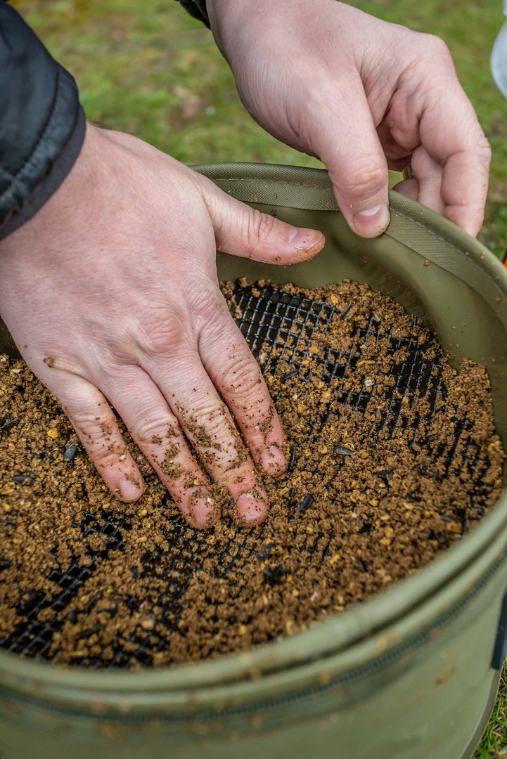 This compact groundbait bowl set includes a rubber mesh riddle, sized perfectly for use with big fish groundbaits and natural baits. Includes carry handle.