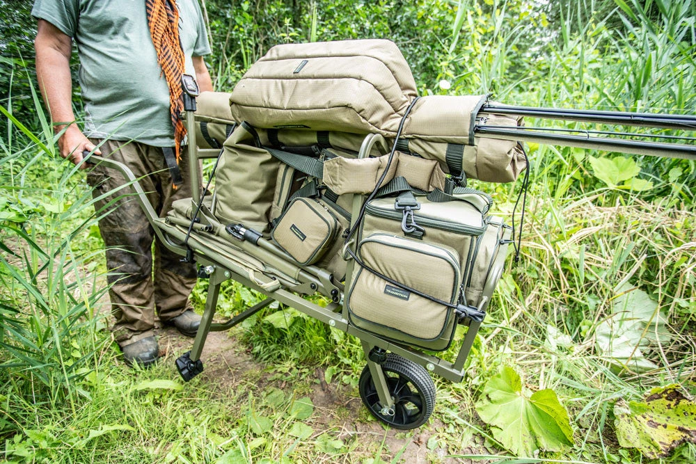 The most portable and efficient barrow to date – perfect for the angler looking to transport their kit quickly and effectively. By enabling anglers to move the weight of their kit over and beyond the wheel, the weight on your arms when lifting the barrow is massively reduced. The front-load area is designed to accept the majority of fishing chairs and carryalls easily, whilst the main loading area is suitable for your main bags and unhooking mats. What’s more, the barrow folds away into a tiny footprint. This means it takes up minimal space in your car, garage or shed. The reinforced wheel is sized for maximum manouverability, whilst also reducing overall weight. If you’re looking for a compact barrow that’s easy to push than what you’ve used before, look no further.