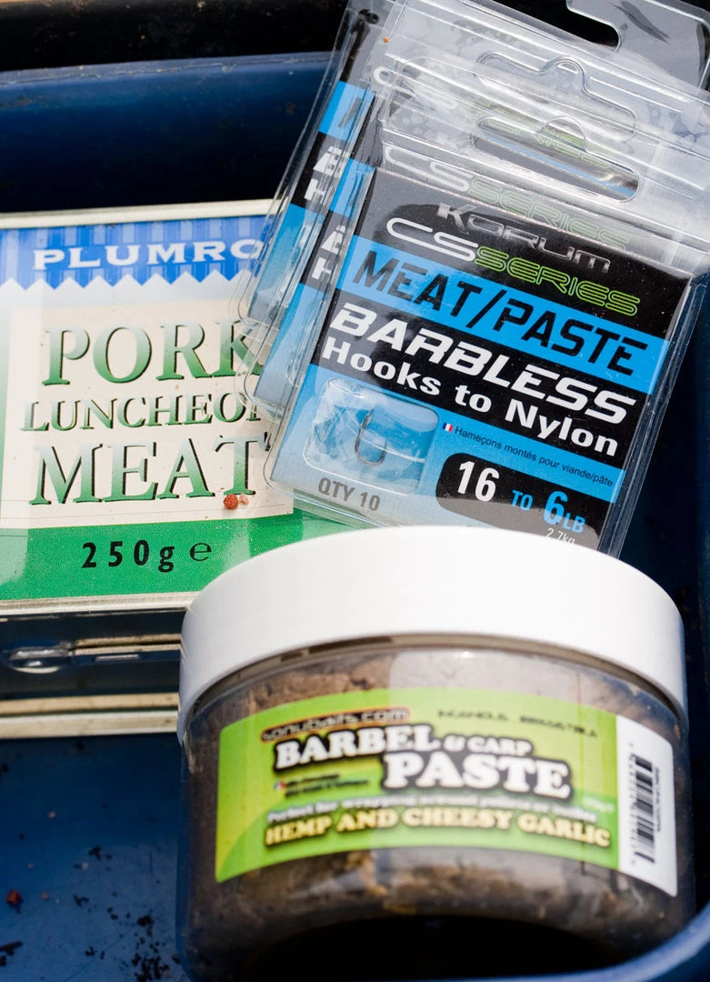 This hook is the ultimate margin hook and great for big baits and big fish. Luncheon meat chunks and balls of paste fit the ultra-wide gape perfectly.