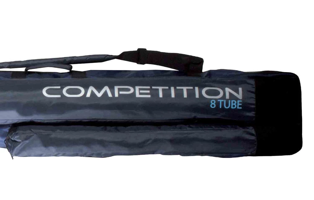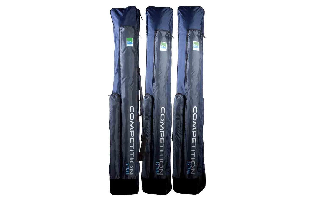 Zipped to the base to allow easy access to the main compartment, which has elasticated straps to hold tubes or poles. Large ¾ pocket for brollys and landing net handles plus a shorter outside bankstick pocket with reinforced base. 190cm(H) x 24cm(W) – 8 Tube. 190cm(H) x 28cmW) – 10 Tube. 190cm(H) x 28cmW) – 12 Tube (2 compartment).