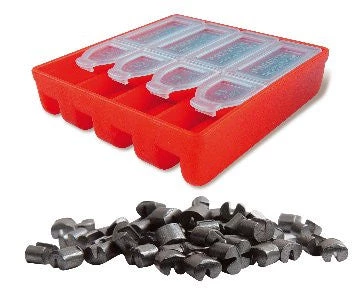 This prevents damage and also stops the Stotz pinging off under stress. The flat ends of Stotz produce a neat bulk when they are grouped together. The dispenser includes sizes 8 to 11.