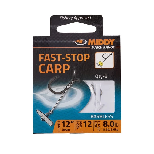 MIDDY Fast-Stop Carp Hooks-to-Nylon (Long – 12″)