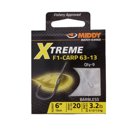MIDDY Xtreme F1 Carp 63-13 Barbless Hooks-to-Nylon