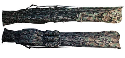 Q-D0s Camo Fishing Holdall 3+3 Carp Rod & Reel Holdall Camo , Comes with padded carry strap Padded carry handles , 3 large external pockets 1 Large main compartment Fully lined This is the Specialist Carp Holdall , The perfect carp rod holdall, with enough room to transport 3 assembled rods and 3 dismantled rods., 2 external pockets, 3 Alarm pockets, These holdalls are made from 600 Denier. and good Padding for ultimate rod & reel protection